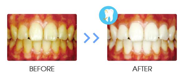 強力青色LED照射による最新のパワー照射器により青色LEDを照射させます。 専用ホワイトニングジェルとLED照射&遠赤外線効果によって短期間で白い歯を目指します。